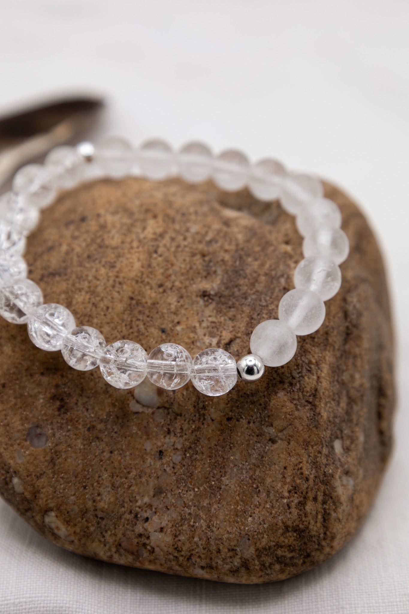 Der Bergkristall ist bekannt als „Meisterstein“. Er schenkt Klarheit, Reinheit und neue Energie. Durch seine klare Schwingung verstärkt er die Wirkung anderer Steine und hilft, Gedanken zu ordnen. Dieses Armkettchen mit zersplitterten und matten Bergkristallen verbindet Leichtigkeit mit Stärke – ein Symbol für innere Klarheit und die Kraft der Ausrichtung.