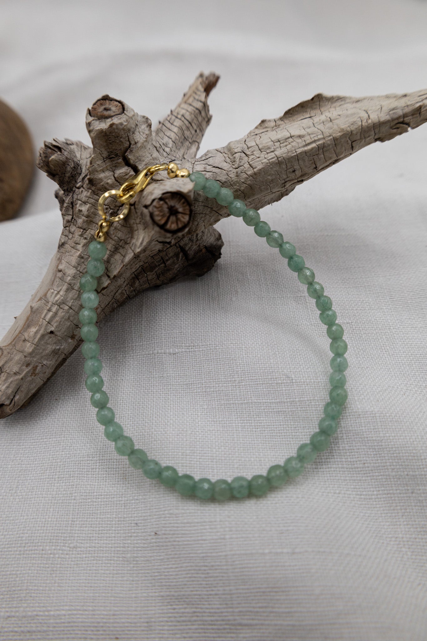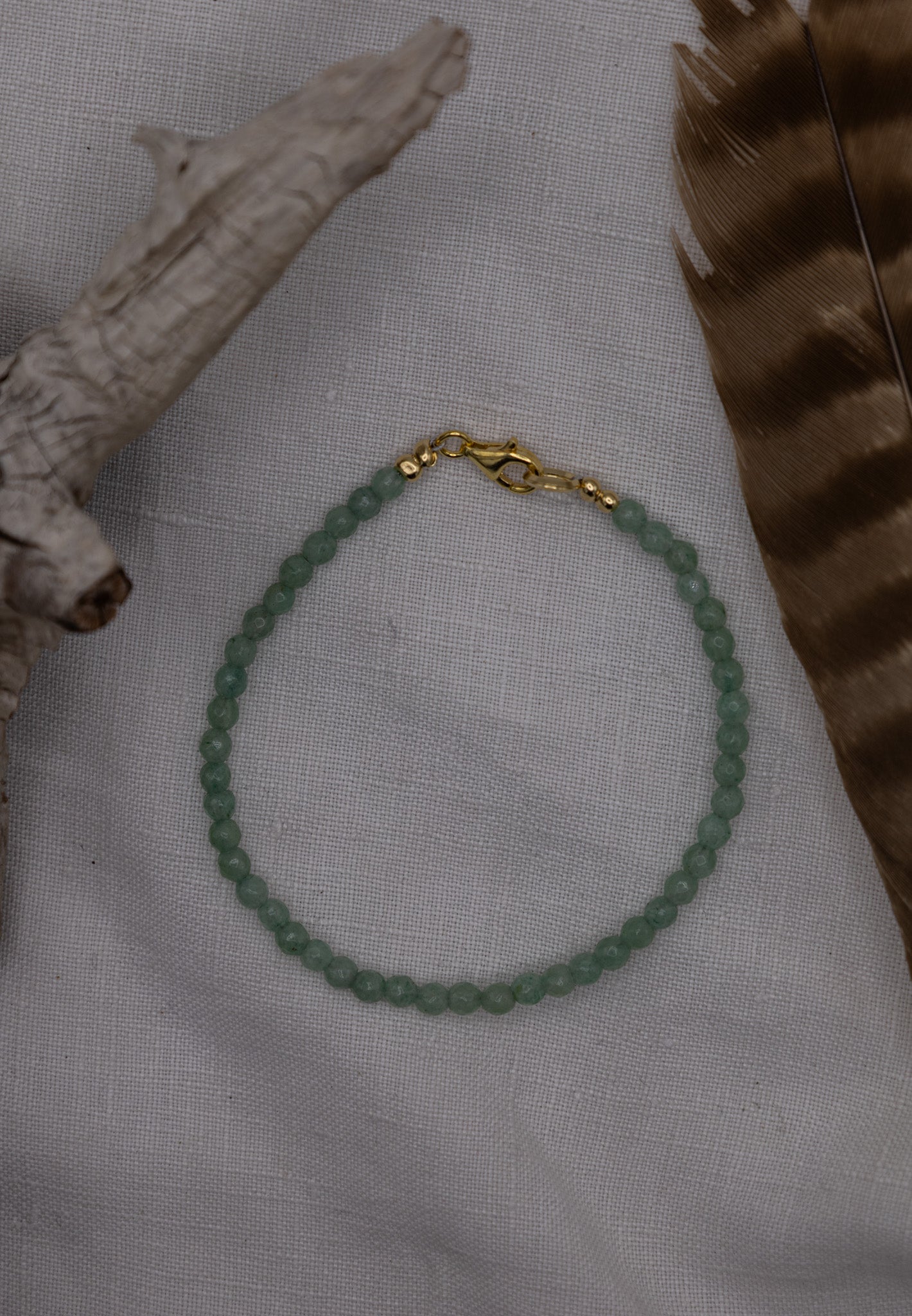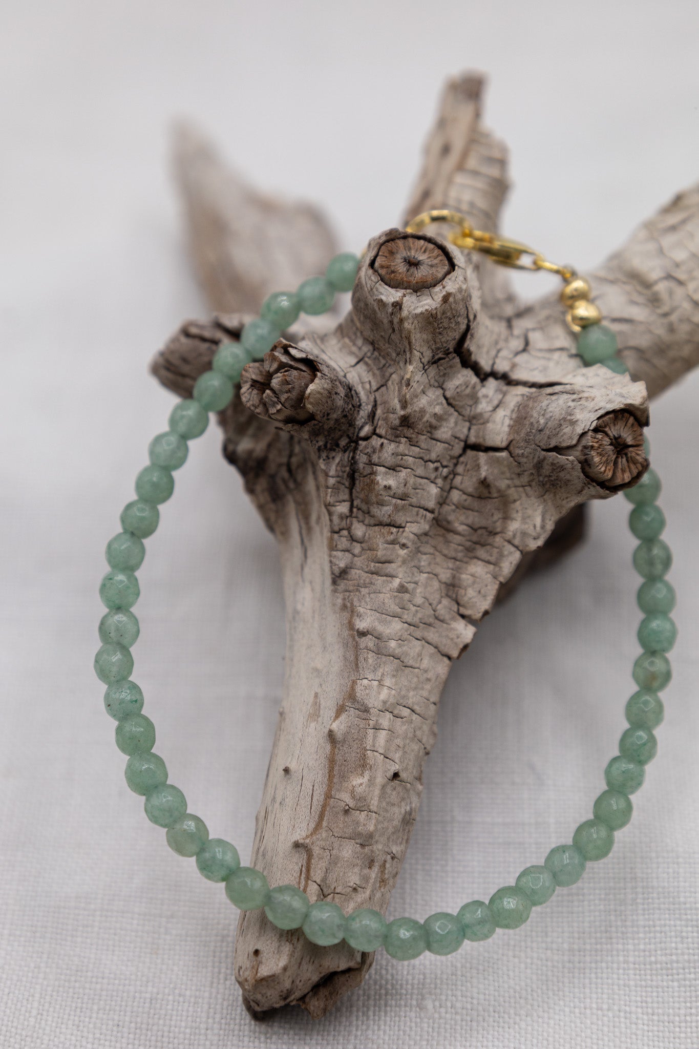 Die sanften Grüntöne erinnern an Wälder, neue Anfänge und die beruhigende Kraft der Natur. Dem grünen Aventurin wird traditionell nachgesagt, dass er Zuversicht, innere Ruhe und Lebensfreude fördern kann. Er gilt als Stein des Optimismus und soll dabei unterstützen, neue Wege mit einem offenen Herzen zu gehen und Vertrauen in den eigenen Flow zu finden. Seine Verbindung zur Natur macht ihn zu einem stillen Begleiter für Balance und Ausgeglichenheit.
